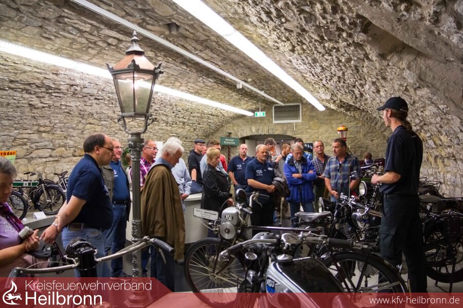 Der Jahresausflug unserer Partnerfeuerwehr Wasserlosen führte sie am Samstag, den 16.08.2014 zu uns nach Bad Friedrichshall. Um 10.00 Uhr durften wir sie an unserem Magazin mit Kaffee und Bretzeln begrüßen. Nach der kurzen Essenspause ging es gleich mit dem geplanten Programm los. Als Erstes wurde das Salzbergwerk Bad Friedrichshall besucht. Dort erhielten wir von unserem Feuerwehrkamerad Karl-Heinz Ruppimmer wieder Informationen über die Geschichte des Bergwerks. Ebenfalls stand er für jegliche Fragen zur Verfügung. Um 13 Uhr ging es dann schon wieder mit dem Korb über Tage und in die Bergschänke zum Mittagessen. Als nächsten Punkt des Tagesprogramms stand jetzt die Führung im Neckarsulmer Zweiradmuseums an. Hier wurde uns zu Anfang ein Film über das Motoradfahren gezeigt. Anschließend ging es in die NSU-Ausstellung im Keller, wo wir die Geschichte des NSU Werks geschildert bekamen. Dann ging es in die Sonderausstellung von Harley Davidson und anschließend in die normale Zweiradaustellung, wo uns interessante Einblicke in die Geschichte der Zweiräder gegeben wurden. Nachdem die Führung zu Ende war, wurden Teile der Austeilung auf eigene Faust erkundet. Alle wieder am Bus angekommen stellten wir fest, dass wir noch Zeit für eine Stadtrundfahrt in Bad Friedrichshall hatten. Diese leitete Kurt Semen; er führte uns durch alle Ortsteile und erklärte die Stadtgeschichte und einzelne Gebäude. Zum Abendessen ging es dann wieder zurück nach Neckarsulm ins Brauhaus. Auf Wunsch vieler Kammeraden aus Wasserlosen führten wir sie noch durch unsere Feuerwache und stellten unsere Fahrzeuge vor. An dieser Stelle noch mal ein Herzlichen Dank an alle die an diesem Ausflug beteiligt waren und die Partnerschaft nach Wasserlosen Aufrecht erhalten.