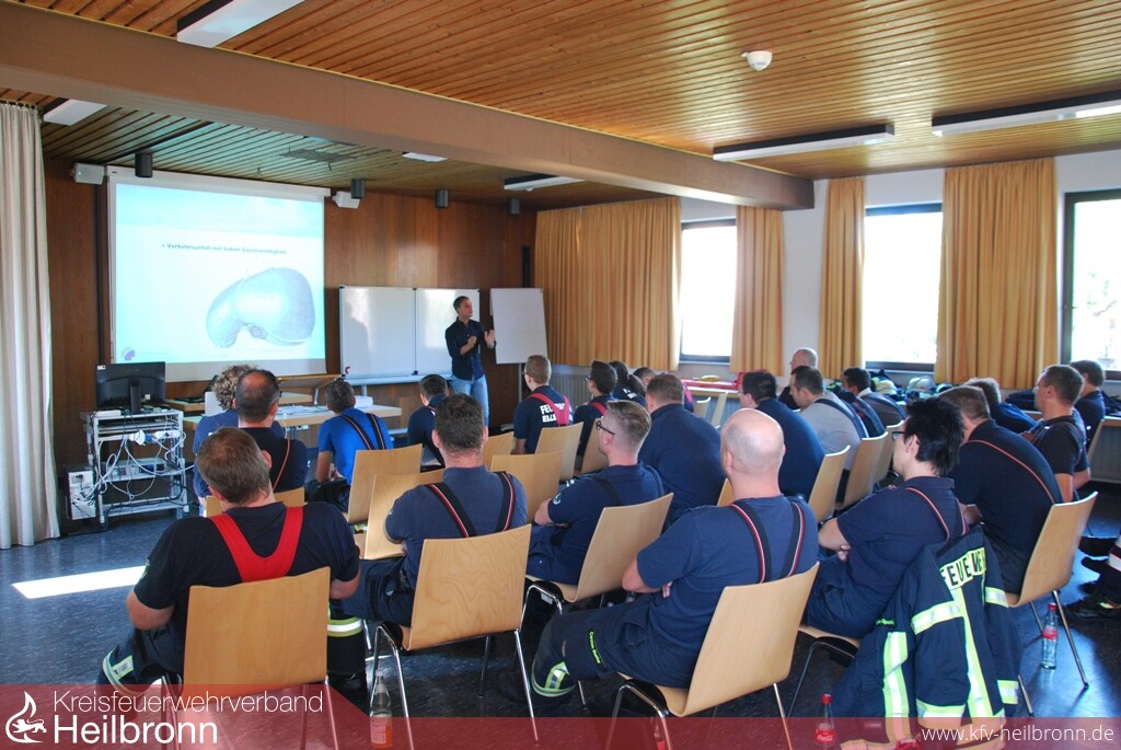 Am 08. September 2018 wurden 25 Feuerwehrkräfte aus dem Bezirk Obersulm-Wüstenrot und vier Rettungskräfte vom ASB Heilbronn im Feuerwehrhaus der Freiwilligen Feuerwehr Weinsberg zu diesen Besonderheiten in Theorie und Praxis geschult.