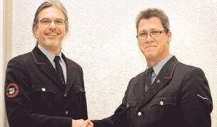 Bild: Obwohl sie eigentlich nicht mehr wollten, erneut als Kommandant und Stellvertreter gewählt: Martin Gross (links) und Joachim Panzer. Foto: Uwe Mundt