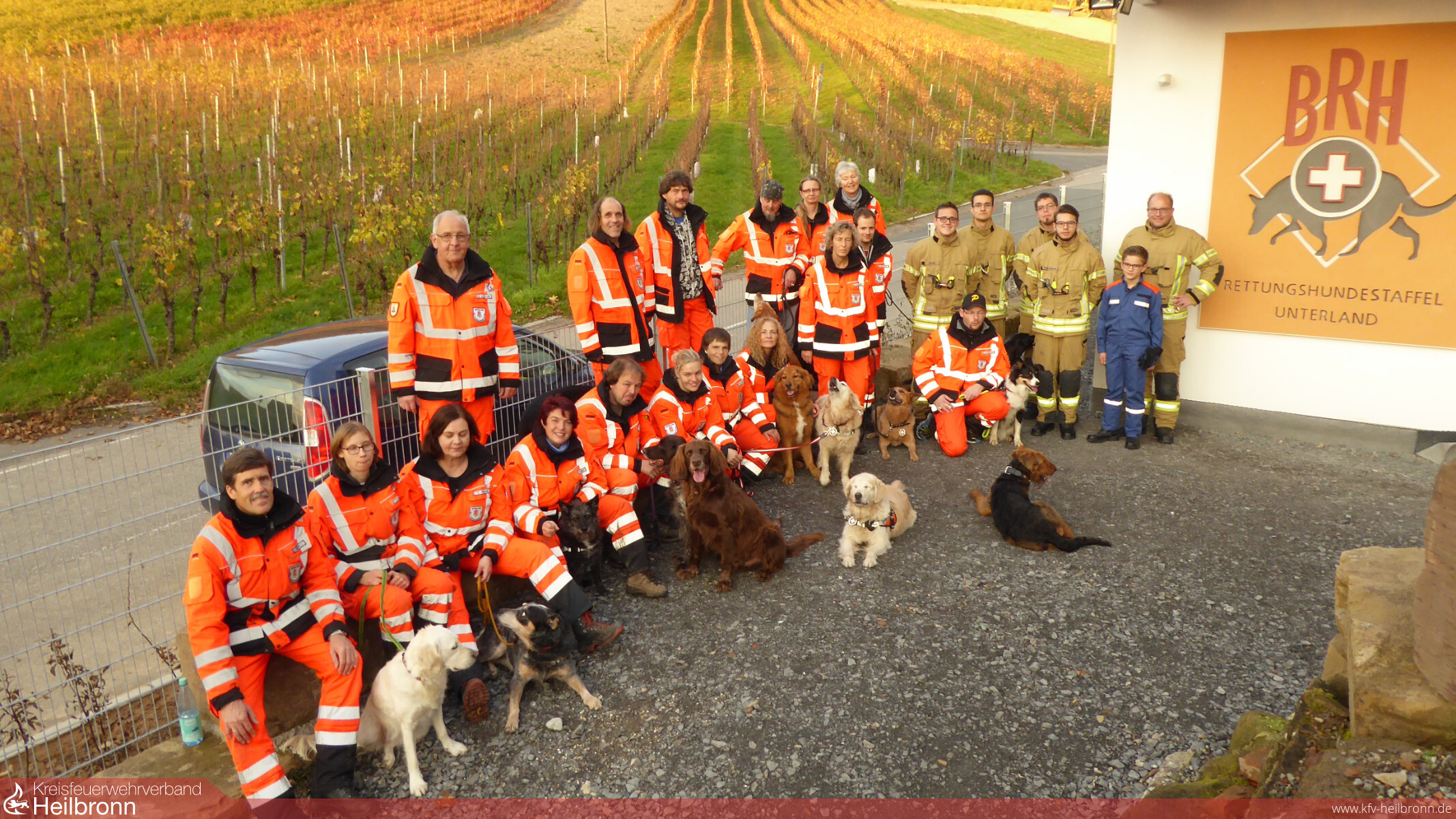 Blaulicht hilft Blaulicht! Das dachten sich auch die Feuerwehrleute der FFW Ellbachtal. Anlässlich der Einweihung ihres neuen Feuerwehrhauses im April 2017 wurde beschlossen, die Kollekte des ökumenischen Gottesdienstes von 250,- Euro auf 400,- Euro aufzurunden und der Rettungshundestaffel Unterland zur Unterstützung ihrer ehrenamtlichen Arbeit zu überreichen. Dies geschah nun bei einem Besuch der Feuerwehrleute beim Training der Rettungshunde auf ihrem Übungsplatz unterhalb des Schweinsberges. Man kennt sich aus vergangenen Einsätzen und Übungen und weiß über die Wichtigkeit der organisationsübergreifenden Arbeit. Mit einem herzlichen Dankeschön nahm Staffelvorstand Günter Baumann den Scheck von Feuerwehrkommandant Thomas Oeckler entgegen. Das Geld wird für die weitere Ausbildung der Rettungshundeteams verwendet werden.
