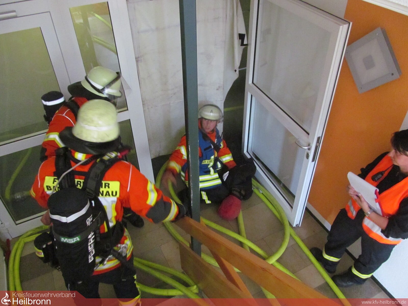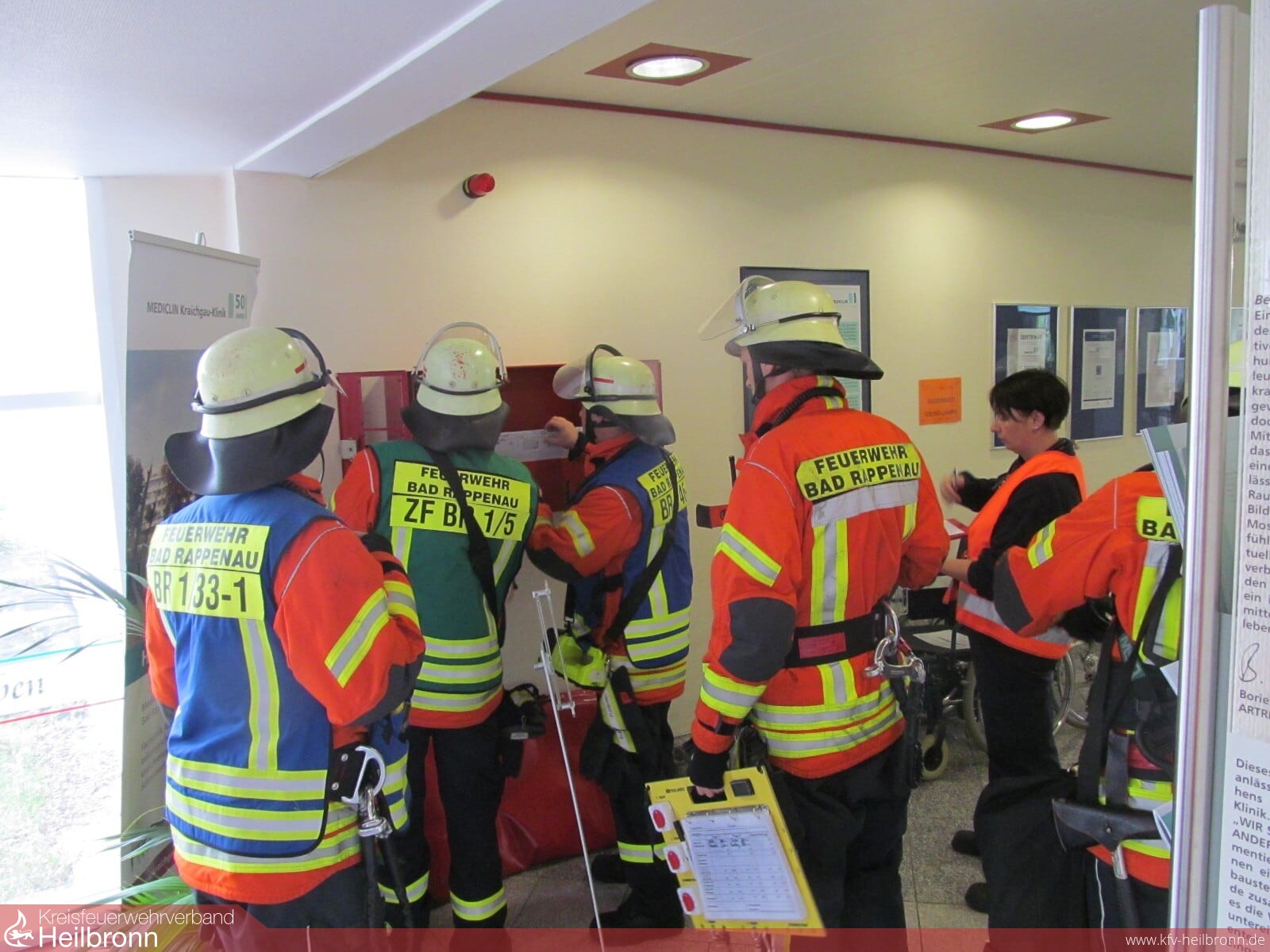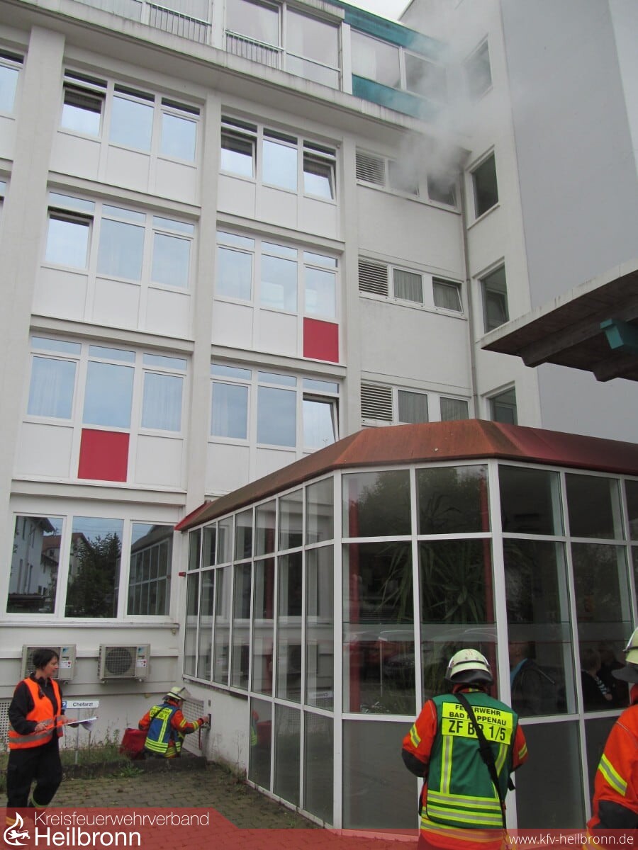 Gemeinsam mit der Leitung der MediClin Kraichgau-Klinik wurde ein entsprechendes Szenario für die Einsatzabteilungen Bad Rappenau, Babstadt, Heinsheim und Wollenberg vorbereitet. Zu Grunde lag ein Zimmerbrand im 3. OG des Hauptgebäudes, mit Verrauchung des Flures und einiger Patientenzimmer.