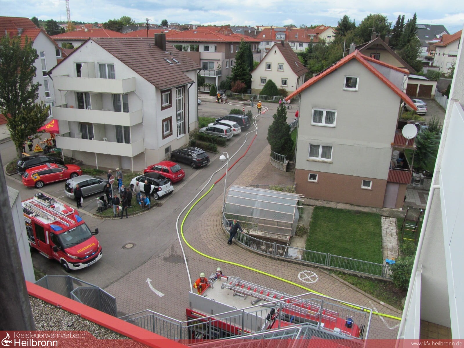 Sowohl Einsatzkräfte als auch Übungsbeobachter (Warnwesten orange) waren grundsätzlich zufrieden mit dem Verlauf der Übung. Auch unser Oberbürgermeister Frei konnte sich ein Bild von der Leistungsfähigkeit seiner Feuerwehr machen.