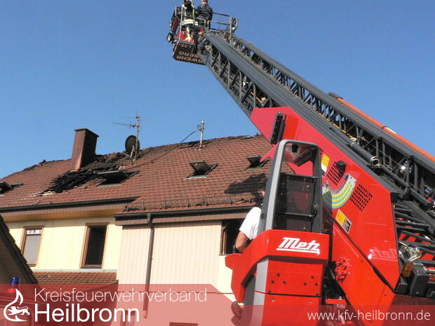 Ein 31-jähriger Mann ist Mittwochnacht nach einem Brand in einem Weinsberger Mehrfamilienhaus mit schweren Brandverletzungen ins Krankenhaus eingeliefert worden. Vermutlich durch einen technischen Defekt war gegen 2.20 Uhr im Dachgeschoss des alten Gebäudes das Feuer ausgebrochen. Die Flammen versperrten dem Bewohner den Fluchtweg durch das Treppenhaus. Der Mann war vor Feuer und Hitze bereits auf die Fensterbrüstung geflüchtet und wollte aus rund zehn Meter Höhe springen. Die Feuerwehr konnte ihn gerade noch rechtzeitig mit einer Schiebeleiter retten. Weitere sechs Hausbewohner brachten sich unverletzt in Sicherheit. Den Sachschaden schätzt die Polizei auf mindestens 350.000 Euro. 70 Feuerwehrleute aus Weinsberg, Heilbronn und Neckarsulm waren im Einsatz.