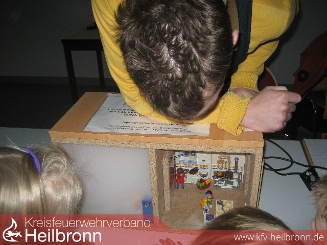 Mit einem "Rauchhaus" wurde den Kindern gezeigt warum es wichtig ist bei einem Brand alle Fenster und Türen beim verlassen des Raumes zu schließen.