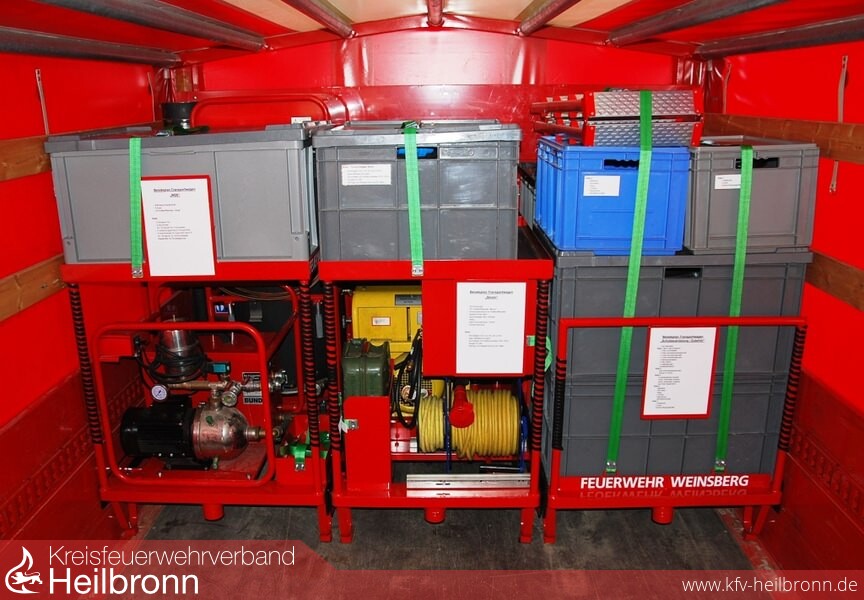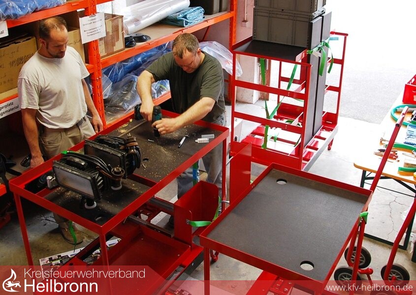Mit über 160 Stunden an Eigenleistung wurde das Konzept durch die Feuerwehrkameraden umgesetzt und die Transportwägen gefertigt. Hierzu geht ein besonderer Dank an folgende Firmen, die uns bei diesem Projekt unterstützt haben: