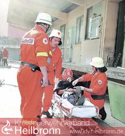 Bald wird die erste verletzte Person aus dem Gebäude getragen. Sie hat eine Brandschutzhaube auf und wird von den Helfern des Roten Kreuzes zu den bereitstehenden Sanitätsfahrzeugen gebracht. Erst als alle Verletzten aus dem WLZ-Gebäude geborgen sind, kann die eigentlich Brandbekämpfung starten. „Es kommt so langsam Nervosität auf“, berichtet Übungskommentator René Irion, „einer der Geborgenen hat von einem weiteren Verletzten im Gebäude berichtet. Außerdem sind wir personell unterbesetzt, ein Löschzug aus der Nachbargemeinde wurde angefordert.“ Schnell ist dann der Brand gelöscht und Kommandant Heiner Schiefer ist hochzufrieden: „Die Übung hat bestens geklappt, alle Handgriffe haben gesessen, die Zusammenarbeit mit dem DRK war super“. Nur klitzekleine Mängel hat der Chef entdeckt. „Um die auszumerzen, machen wir ja solche Übungen.“