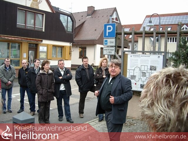 Erster Halt war beim freigelegten ehemaligen Römerbad. Mit Herzblut und sehr fundierten Kenntnissen erläuterte der örtliche Geschichtsforscher Heinrich Kühner, das Bad, die damalige Lebensweise und letztendlich die ehemaligen „Jagsthäuser Römer".