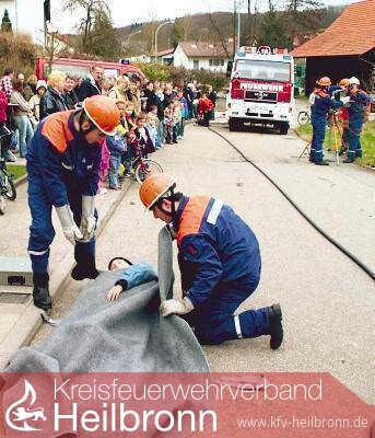 Auch die Rettung von Verletzten gehört zu den Aufgaben der Floriansjünger, wie die Hardthausener Jugendwehr vorführte. (Foto: Agentur Kochertal)