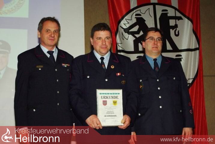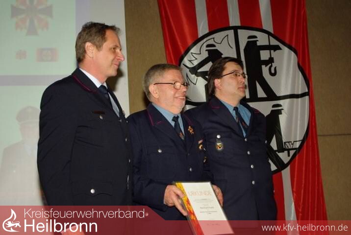 Im Rahmen der Jahreshauptversammlung der Freiwilligen Feuerwehr Eppingen durfte der Vorsitzende des Kreisfeuerwehrverbandes Heilbronn, Reinhold Gall Mdl, das Deutsche Feuerwehrehrenkreuz in Gold an Ehrenkommandant Reinhard Frank überreichen.