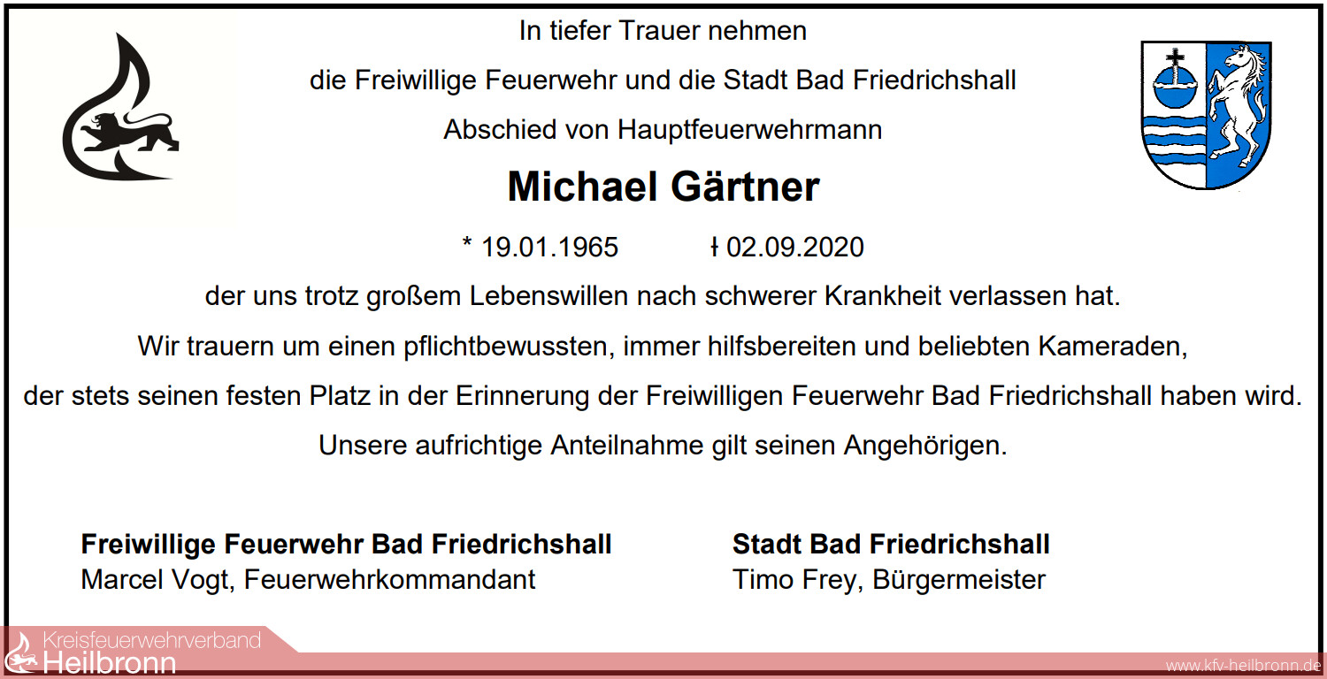 Die Feuerwehr Bad Friedrichshall wird Michael Gärtner in dankbarer Erinnerung behalten.