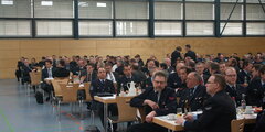 Landrat Detlef Piepenburg dankte den Feuerwehren im Landkreis in seinem Grußwort zur Dienstversammlung in der Neudenauer Sturmfederhalle für das erbrachte Engagement. Im Durchschnitt müssen im Landkreis 9 Einsätze pro Tag bewältigt werden. „Wir haben starke Wehren, die einen großen Wert auf eine gute Ausbildung legen“, so Piepenburg. Weiter führte er aus, dass man mit einem Blickt auf den Personalstand feststellen darf: das die Frauen in den Feuerwehren angekommen sind.