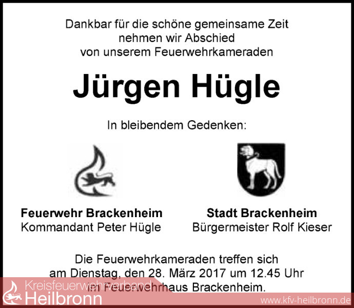 Die Freiwillige Feuerwehr Brackenheim trauert um