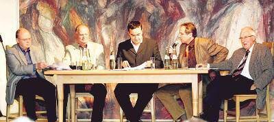 Foto1: Diskutierten über Chancen des Ehrenamts (von links) : Kurt Scheffler vom Sportkreis Heilbronn, Kreisfeuerwehr-Chef Reinhold Korb, Moderator Daniel Abbou, SPD-Politiker Reinhold Gall, Rolf Kaelble vom Albverein. (Foto: Ralf Seidel)