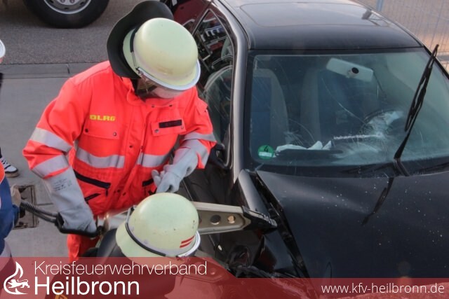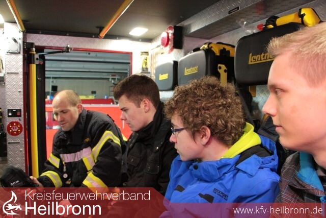 Um den Jugendlichen die Feuerwehrtechnik etwas näher zu bringen, durften diese an drei Stationen auch einmal selbst Hand anlegen. Etwas frostig dürfte es bei einem kalten Wind wohl im Korb der Drehleiter gewesen sein, als sich dieser in luftige Höhen bewegte.Am HLF 20 konnten die Jugendlichen vom JET einmal selbst spüren, welches Gewicht die Atemschutzgeräteträger bei einem Brandeinsatz mit sich herumtragen dürfen und wie die Wärmebildkamera eingesetzt wird. Am Rüstwagen galt es dann mit Schere und Spreizer an einem Übungsfahrzeug die Beifahrertüre zu öffnen und Entlastungsschnitte zu setzen. Hin und wieder gab es hier beim Anheben der hydraulischen Rettungsgeräte große Augen zu sehen, weil man sich die Geräte und das Arbeiten damit sicherlich nicht so schwer vorgestellt hatte.