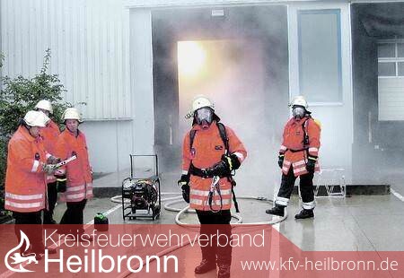 Foto: Übung mit Atemschutz bei der WLS GmbH in Ilsfeld: Die Feuerwehrleute hatten drei „Verletzte“ aus dem total verqualmten Gebäude gerettet. (Foto: Luzia Grimm)
