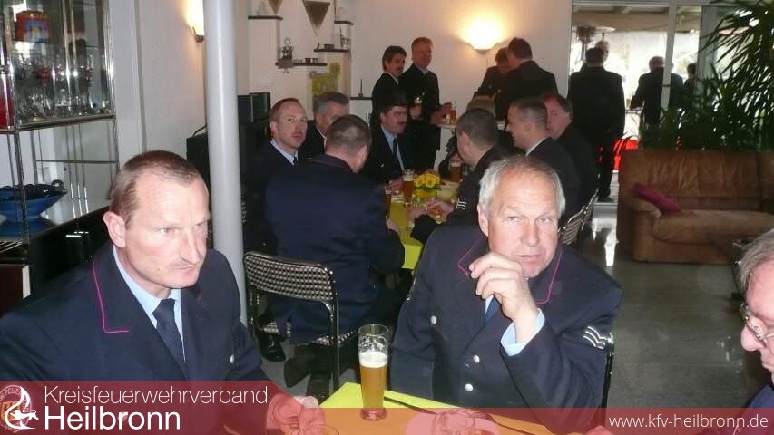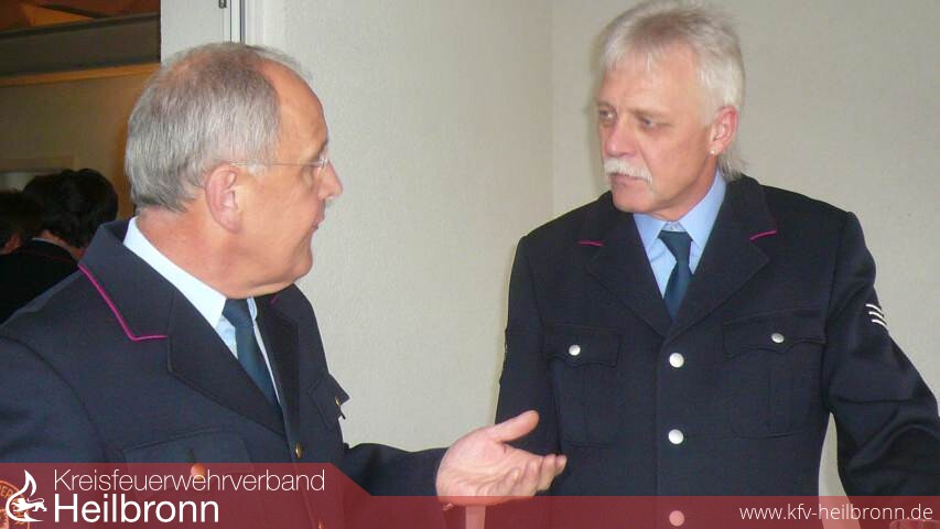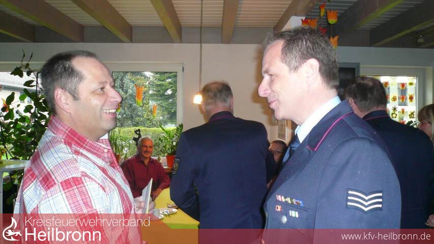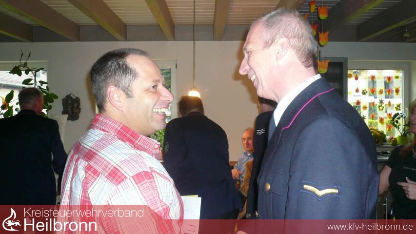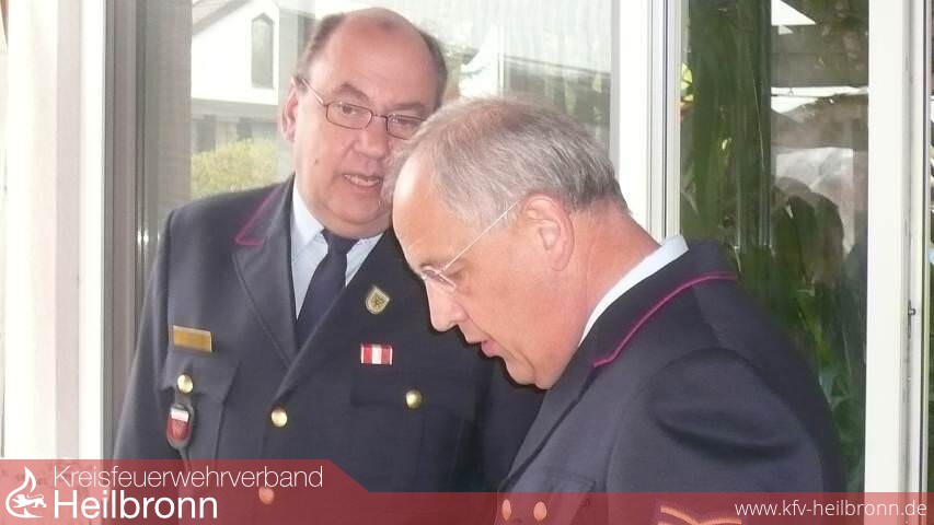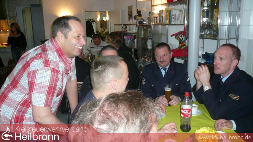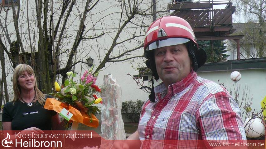 Groß war die Zahl der Gratulanten. Im Wohnzimmer des Geburtstagskindes wimmelte es von „Blauröcken" der Feuerwehr Heilbronn, Vertretern des Kreisfeuerwehrverbandes und Kreisbrandmeister Uwe Vogel. Kurz, die gesamte Führungsspitze der Feuerwehren des Stadt- und Landkreises Heilbronn machten dem 50 jährigen ihre Aufwartung und überbrachten ihre Glückwünsche.