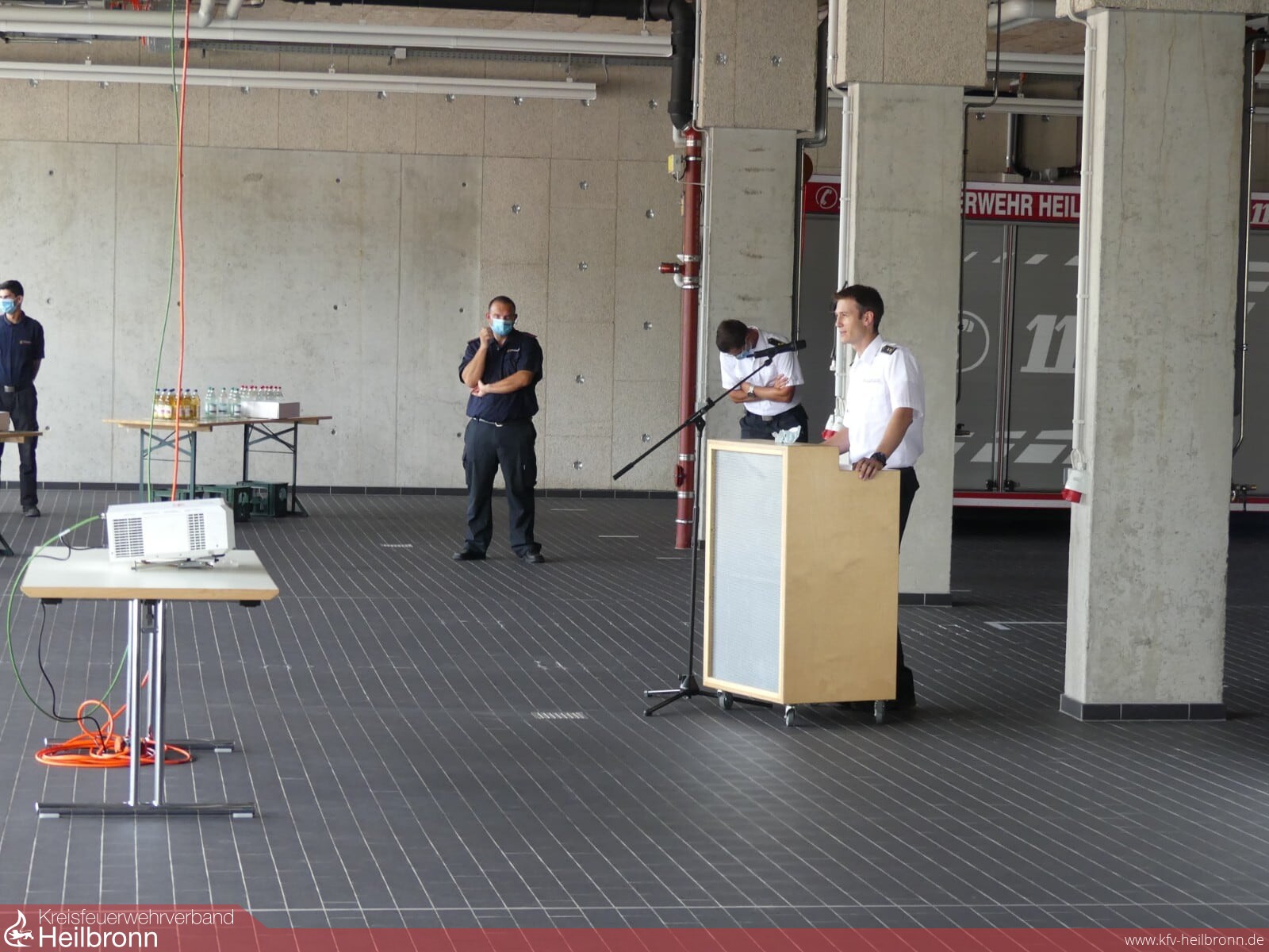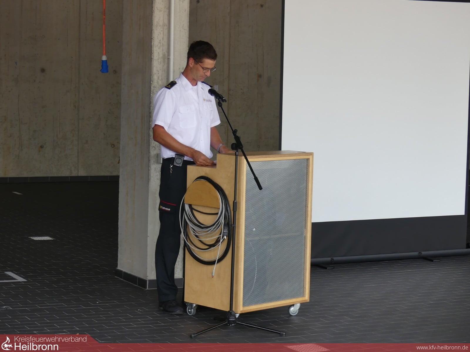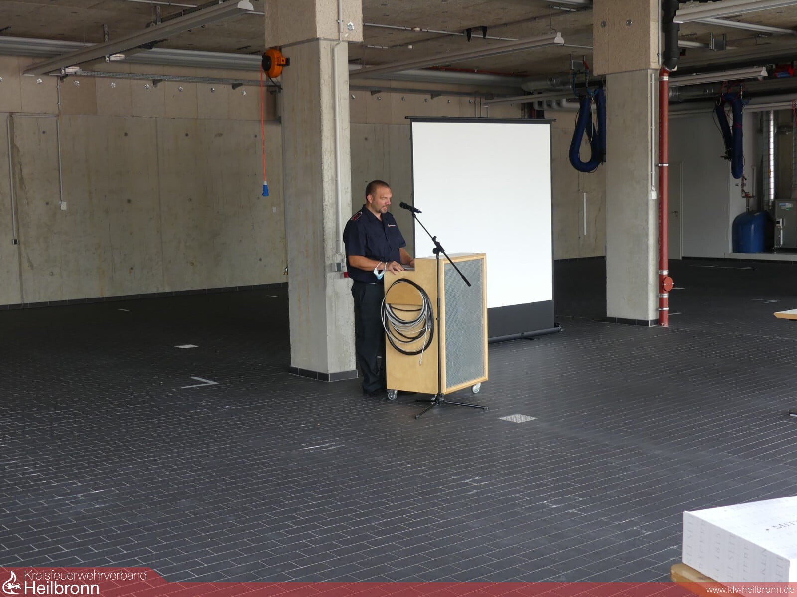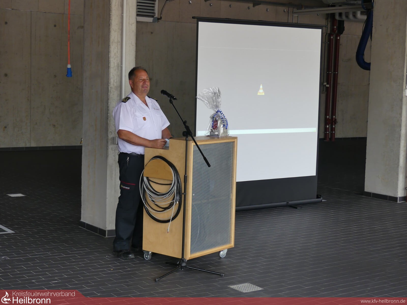 Zuletzt trat auch Eberhard Jochim ans Mikrofon und bedankte sich bei seinen Mitarbeiterinnen und Mitarbeitern für die lange, gute Zeit bei der Feuerwehr Heilbronn.