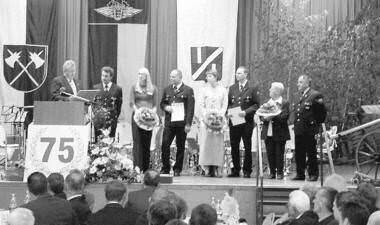 Grußworte sprachen Lutz Mai, als Vertreter des Landrats, Kreisbrandmeister Hans-Wilhelm Hansmann, Dr. Bernhard Lasotta, Gerhard Haag als Vertreter der örtlichen Vereine und Organisationen sowie Kommandant Didier Guitton von der Partnergemeinde Durtal.