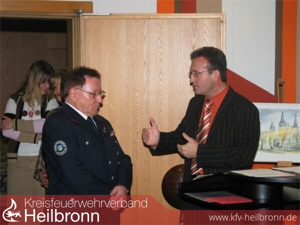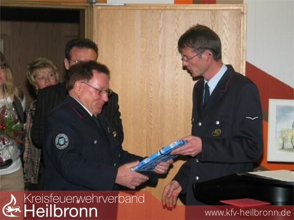 Der stellvertretende Kommandant der Feuerwehr Offenau Rainer Beer vertrat indessen den aus geschäftlichen Gründen verhinderten Kommandanten Achim Klotzbücher und überreichte im Namen der Wehr ein Geschenk. Auch die Feuerwehr wünsche sich, so Rainer Beer, dass Rittenauer weiterhin für die Ausbildung und als Übungsbeobachter zur Verfügung stehe. Besonders für das Lieblingskind Franz Rittenauers - die Jugendfeuerwehr - sei seine langjährige Erfahrung wichtig.