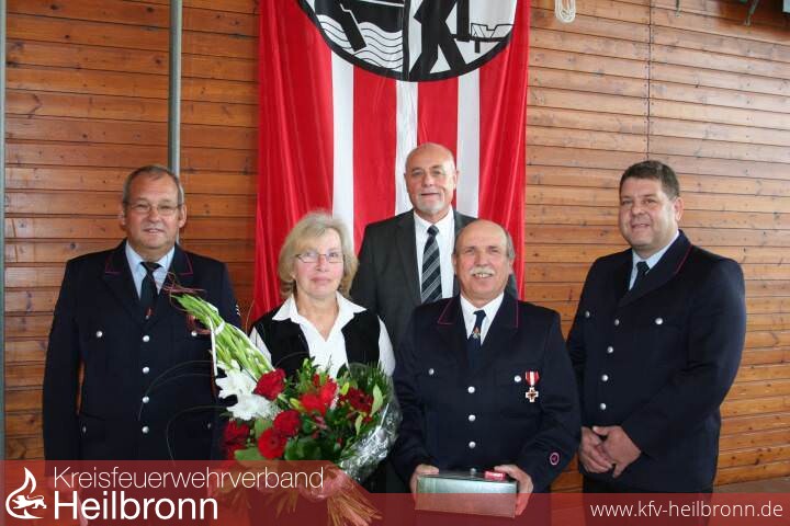 1971, just im Jahre des Zusammenschlusses der beiden Wehren, war Eugen Bertsch in die Freiw. Feuerwehr Oedheim, Abteilung Degmarn eingetreten und ist seither aktiv im 3. Zug der Wehr. Sein Engagement ist stets vorbildlich auch für die jungen Kameraden der Wehr. In früheren Jahren war er auch mit seinem Schlepper als Zugmaschine für den Tragkraftspritzenanhänger TSA für die Fahrten zu Einsätzen und Übungen gefragt. Für seine Verdienste konnten Bürgermeister Ulrich Ruoff und Kommandant Franz Schuster Eugen Bertsch einen Gutschein für das Feuerwehrhotel am Titisee sowie seiner Ehefrau einen Blumenstrauß für die langjährige Unterstützung beim Feuerwehrdienst überreichen.