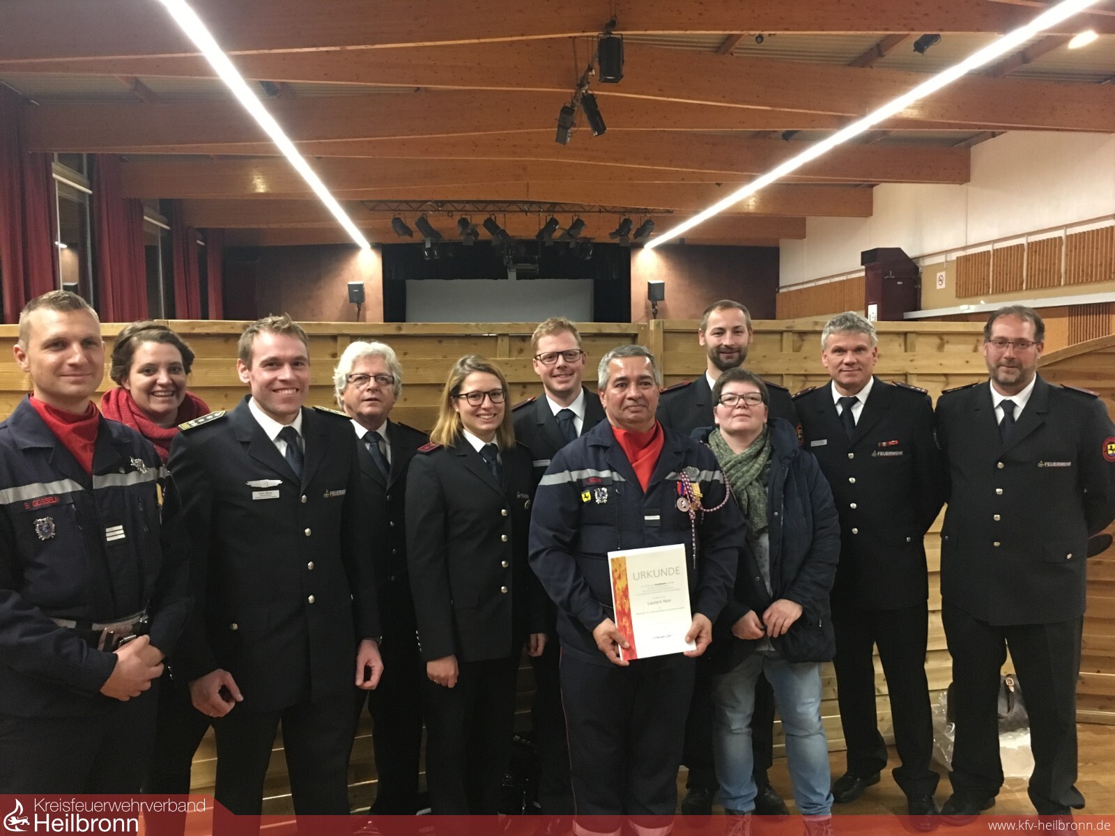 Nachdem Kamerad Laurent Noir nun über zehn Jahre die Freundschaften zwischen den Städten durch sein Engagement gepflegt und aufrecht erhalten hat, sahen wir es an der Zeit, ihn im Kreise seiner Kameraden als Zeichen der Wertschätzung zu ehren. Dank der Unterstützung unserer Feuerwehrverbände (Kreis, Land und Bund) war es uns möglich, Laurent am 24.11.2018 mit der Medaille für internationale Zusammenarbeit des Deutschen Feuerwehrverbandes auszuzeichnen. Mit einer extra auf französisch gehaltenen Rede im Rahmen der Feierlichkeiten, gehalten durch Kommandant Mann und Abteilungskommandant Scholz, wurde ihm diese Ehre zu teil und durch einen begeisternden Applaus seiner Kameraden untermauert.