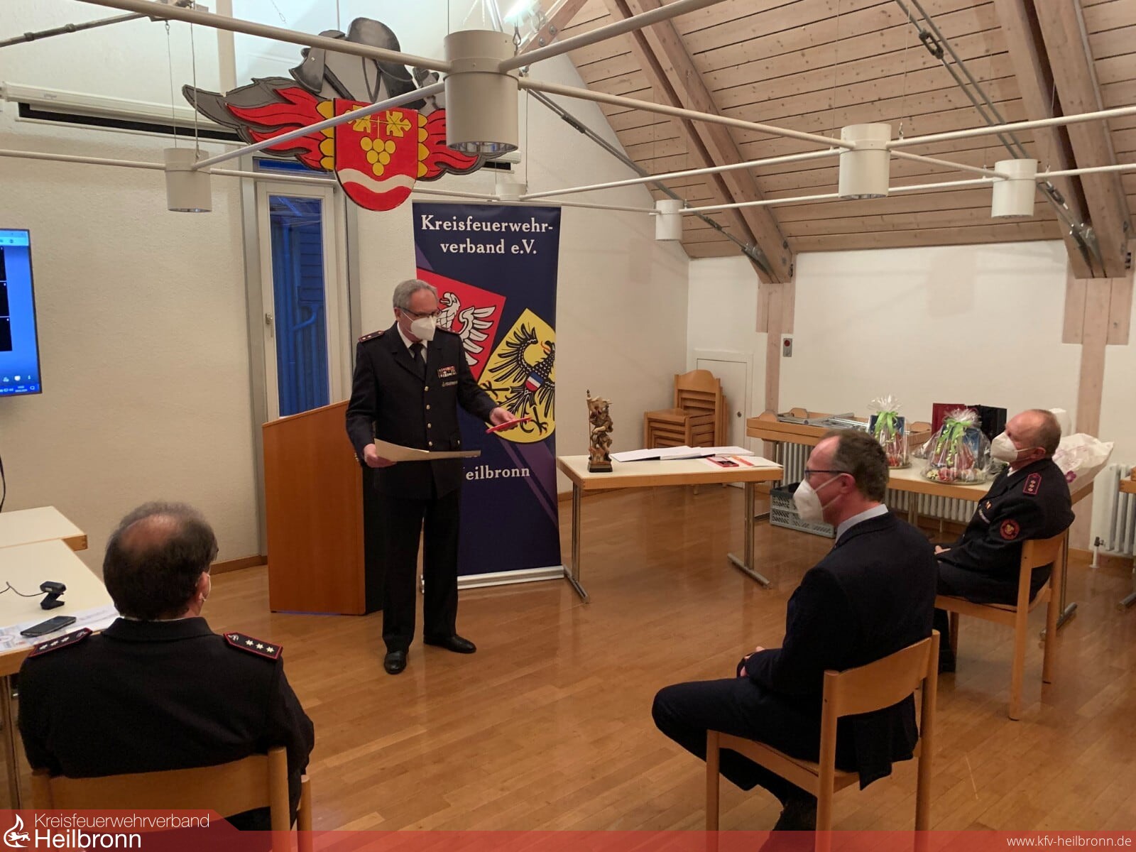 Die Gemeinde Obersulm ernannte den Abteilungskommandanten zum Ehrenkommandanten und seinen Stellvertreter zum Ehrenmitglied der Freiwilligen Feuerwehr Obersulm. Bürgermeister Schmidt händigte jedoch nicht nur die Urkunden aus, sondern übergab gemeinsam mit dem Kommandanten Gerhard Schenk Geschenkkörbe und Freiplätze für das Feuerwehrhotel Titisee.