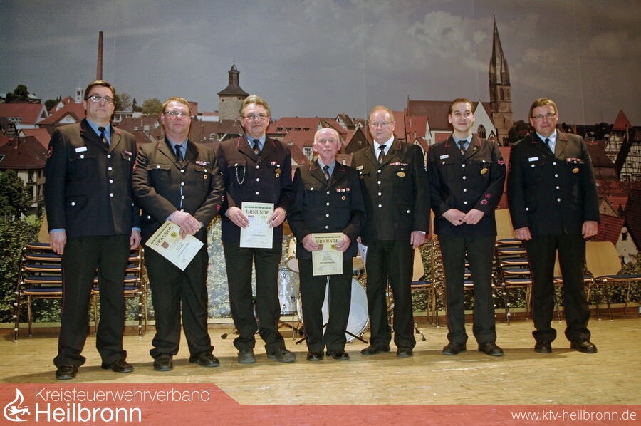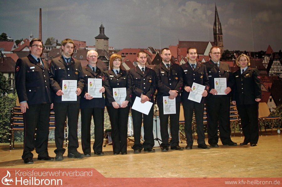 Für ihre Verdienste um die Jugendfeuerwehrarbeit ehrte die Kreisjugendfeuerwehrwartin Katrin Semen die Stadjugendfeuerwehrwartin Anne Reimold (Mühlbach), den stv. Stadtkommandant Thomas Blösch (Eppingen), den stv. Stadtjugendfeuerwehrwart Thorsten Lang (Eppingen), die Jugendwarte Heiko Kögel (Adeslhofen), Alexander Schmidt (Elsenz), Andreas Holtz (Mühlbach) Gerald Strouhal (Richen) sowie den Jugendgruppenleiter Sven Reimold ( Eppingen). Sie erhielten die Ehrennadel mit Urkunde der Jugendfeuerwehr Baden-Württemberg.