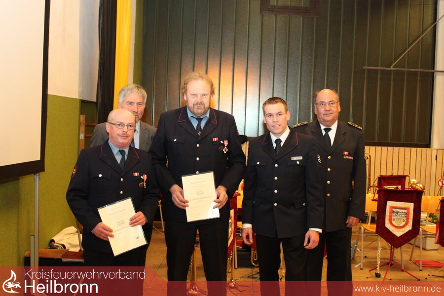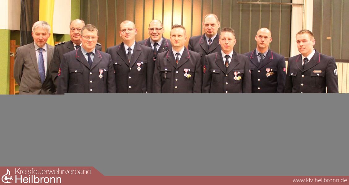 Für 25 Jahre aktiven Dienst (Feuerwehr-Ehrenzeichen BRONZE) bei der Feuerwehr Bad Rappenau, Abt. Bad Rappenau LM Timo Hofmann, OLM Udo Lauer, LM Klaus Schneider, HBM Ralf Schneider, HFM Gerhard Zimmermann sowie von der Abt. Bonfeld OFM Heiko Höllmüller und von der Abt. Heinsheim LM Wilhelm Lohr und OLM Jürgen Lietzow.
