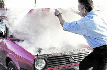 Foto: Wer einen Brand im Motorraum löschen will, sollte die Haube nicht so weit aufmachen. Dadurch kann das Feuer angefacht werden. (Foto: gms)