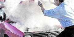 Weil jedoch die meisten Fahrzeugbrände laut dem AZT durch technische Defekte im Motorraum entstehen - zum Beispiel durch heiße Motorteile, Funkenbildung, Kurzschlüsse oder undichte Ölleitungen -, können sie bevor sie auf den Innenraum übergreifen leicht mit einem Handfeuerlöscher gestoppt werden.