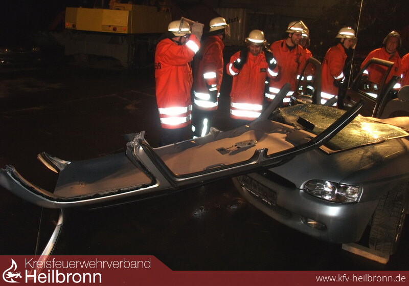 Am vergangenen Montag stand für die Abteilung Stetten das Thema Technische Hilfeleistung und die Einsatzmöglichkeiten des neu beschafften Spineboard zur Personenrettung aus Kraftfahrzeugen im Vordergrund. Dazu wurde ein Fahrzeug auf dem Schrottplatz in Gemmingen wiedereinmal kurz und klein geschnitten.