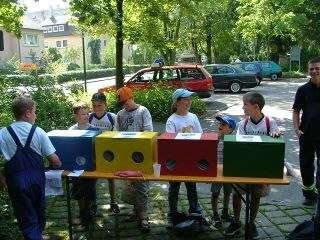 Auf dem Programm stand dieses Jahr eine Stadtrallye. An 5 Stationen, die in ganz Weinsberg verteilt waren, konnten sich die Kinder austoben. So musste man an einer Station mit Hilfe einer Kübelspritze, Tennisbälle von Verkehrsleitkegeln abschießen. Bei der nächsten Station, hatte man die Aufgabe, einen Tischtennisball durch einen C-Schlauch zu befördern. Eine weitere Station war ein Fühlspiel. In 4 nichteinsehbare Kisten waren laut Beschilderung verschiedene Tierarten, wie Spinnen, Schnecken, Schlangen und ein Chamäleon eingeschlossen. Nun galt es seinen Mut zu beweisen und die Tiere mit den Händen zu fühlen. Wie sich dann herausstellte, waren es keine Tiere, sondern normale Alltagsgegenstände, wie getrocknete Nudeln, Kleister, gekochte Spaghetti oder ein Fell. Weitere Stationen waren das Schlauchkegeln und Schwammwerfen.