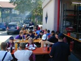 Abschließend konnten sich die Kinder im Feuerwehrgerätehaus bei Grillwürsten und Getränken stärken. Zum Schluss wurde noch die Siegerehrung vorgenommen. Da alle Gruppen fast die gleiche Punktzahl erreicht hatten, wurden alle als Sieger erklärt und mit Süßigkeiten oder Eis belohnt.