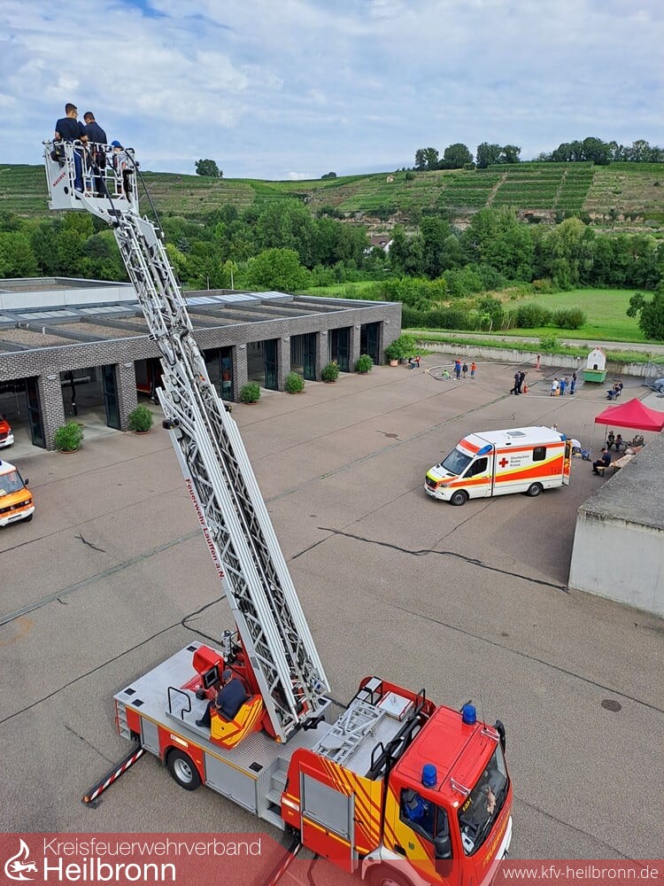 An verschiedenen Stationen konnten die Kinder das brennende Holzhaus beim Spritzenspiel löschen oder mit der Drehleiter hoch hinausfahren. Bei der Station des DRK Ortsverein Lauffen hatten alle Kinder die Möglichkeit einen Rettungswagen zu besichtigen. Zur Stärkung konnten sich die Kinder bei einer Brezel und Apfelschorle in der großen Fahrzeughalle ausruhen. Für viele strahlende Gesichter sorgten die Highlights wie die Fahrt mit dem Feuerwehrauto und die Fahrt mit dem Feuerwehrboot auf dem Neckar.