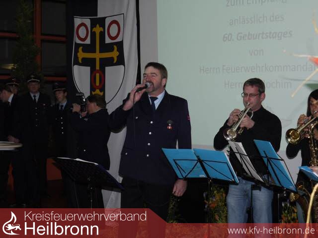 Den Dank des Landkreises Heilbronn für 25 Dienstjahre überbrachte der Erste Landesbeamte Lutz Mai. Im Amt des stellvertretenden Kreisbrandmeisters habe Hermann Jochim sein „großes Wissen und seine Erfahrung für den Landkreis und dessen Einwohner investiert“, erklärte Mai. „Wir sind froh, dass Sie an unserer Seite sind.“ Die Wertschätzung des Kreisfeuerwehrverbandes Heilbronn brachte dessen Vorsitzender Reinhold Gall zum Ausdruck. Hermann Jochim sei ein Mensch, der auch bei größeren Einsätzen nie durch Lautstärke oder einen rüden Umgangston auffalle, sondern eher durch „freundschaftliche Bestimmtheit“ geprägt sei. „Du hast Deine Führungsqualitäten nicht durch lautes Auftreten unter Beweis stellen müssen“, bestätigte Reinhold Gall. Der Jubilar, der laut Gall „nur dann das Wort ergreift, wenn es notwendig erscheint“, bedankte sich bei der Stadt und seinen Feuerwehrkameraden für den gelungenen Empfang. Für die heitere und schwungvolle Begleitmusik sorgten der Musik- und Gesangverein Dahenfeld und das Blechbläserensemble „Heilix Blechle“. Die ihm zuvor zugesprochenen Charaktereigenschaften bestätigte Hermann Jochim, indem er seinen Dank mit wenigen, aber tief empfundenen Worten ausdrückte: „Ich bin überwältigt.“ (snp)