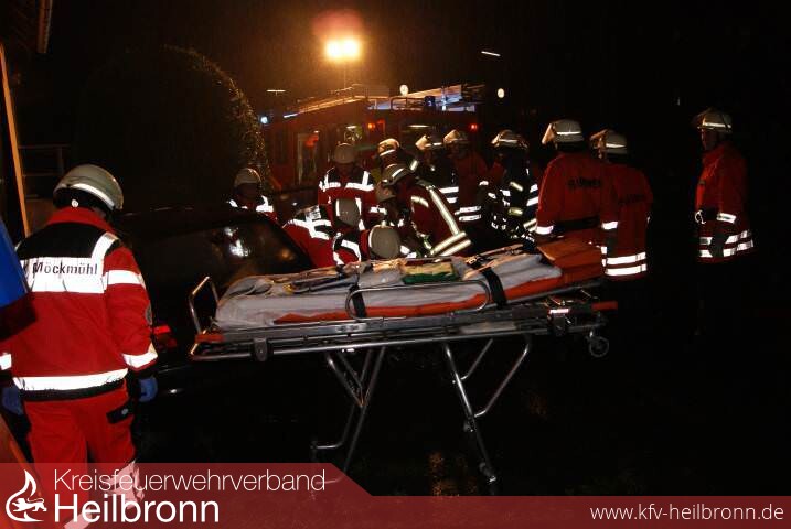 Drehbuch Ein kleines Drehbuch hatten sich die Feuerwehrmänner für die Übung ausgedacht. "Ein Auto kommt von der Straße ab und fährt gegen eine Hauswand. Daraufhin fängt es Feuer und der Brand geht auf das Jugendhaus über", sagt Saur. Um kurz vor halb acht heulen deshalb die Sirenen in Roigheim. Mit Martinshorn und Blaulicht treffen wenig später die Rettungskräfte ein.