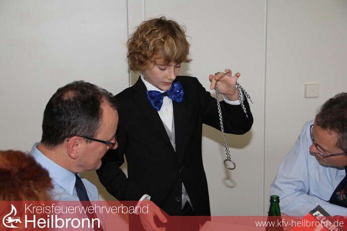 Als nächste Überraschung folgte ein wirklich köstliches und aufwändiges brasilianisches Essen, welches für jeden Gast etwas zu bieten hatte. Sechs Fleischsorten, viele Beilagen, Gemüsespieße, 15 Salatsorten und ein Ananasnachtisch sorgten für ein fast zweistündiges Essen. Danach hatte der 13jährige Zauberer Tim seinen Auftritt, er ging von Tisch zu Tisch und verzauberte die Gäste mit seinen wirklich tollen Tricks. Bis zu fünf mal zeigte er die unterschiedlichsten Kunststücke und ließ staunende und ratlose Gäste zurück. Bereits bei den Begrüßungsansprachen kümmerte er sich um die anwesenden Kinder, welcher er allesamt in seinen Bann zog und welche ihn in der Halle als neue Fans von Tisch zu Tisch verfolgten. Eine dezente, weihnachtliche Dekoration auf den Tischen gab dem Festsaal an diesem Abend seinen letzten Schliff. 60 festlich verzierte Weihnachtssterne schmückten zudem die Tische und waren in diesem Jahr die Geschenke für die Ehefrauen und Freundinnen.