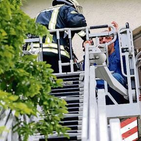 Bild 3: Versuch geglückt: Auch die Rettung mit der Drehleiter klappte problemlos. (Fotos: Guido Sawatzki)