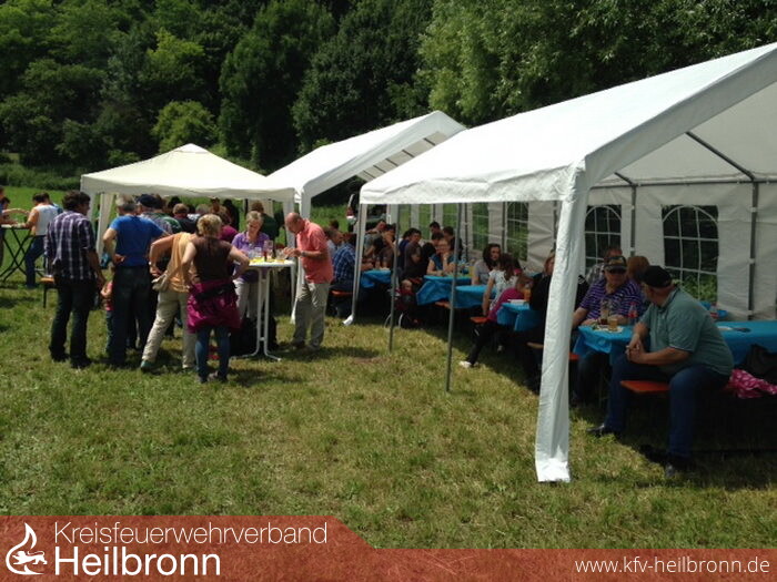 Der Tag begann mit einem Sektempfang und kleinem Fingerfood auf der Terrasse der Jagsttalhalle, wo Bürgermeister Ulrich Stammer und Kommandant Uwe Thoma die knapp 90 Gäste herzlich willkommen heißen durften.
