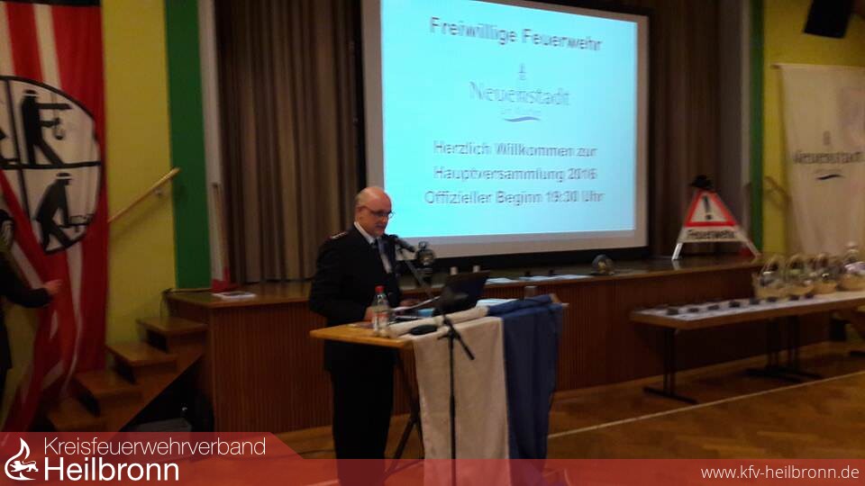 Ausrüstung Wie wichtig dabei eine gute Ausrüstung und Ausbildung sind, betonte Kommandant Hartmut Schaffroth vor den rund 130 Mitgliedern: „Der Ausbildungsstand ist auf einem hohen Niveau.“ Nicht zuletzt, weil der Ernstfall immer wieder geprobt werde. „Durch Großübungen aller Abteilungen, wie bei der Firma Neumeister und anderen Betrieben in Neuenstadt, wird auch die Führungsgruppe fest in den Einsatzablauf integriert und hilft auch größere Einsätze strukturiert abzuarbeiten.“ Längst bewährt habe sich die 2012 beschaffte Drehleiter, sowohl bei Einsätzen im Stadtgebiet als auch bei der Überlandhilfe im Kochertal.