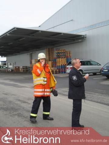 Um 19 Uhr wurde durch die Brandmeldeanlage ein Alarm ausgelöst und nach drei Minuten rückte der Neuenstädter Löschzug bestehend aus Kommandowagen, Hilfeleistungslöschfahrzeug, Tanklöschfahrzeug und Mannschaftstransportwagen aus. Durch die rasche Ausbreitung wurde die sofortige Nachalarmierung der Abteilungen Stein / Kochertürn und Cleversulzbach veranlasst. Insgesamt waren 60 Mitglieder der Feuerwehr, sowie fünf Mitglieder der Jugendfeuerwehr (als Verletzte) beteiligt. Beim Eintreffen machten sich einige Personen an den Fenstern bemerkbar, diese wurden über tragbare Leitern und, wo dies nicht möglich war, unter Einsatz des Sprungretters in Sicherheit gebracht (nur als Übungsannahme – Sprungversuche im Übungsbetrieb sind verboten). Zur Sicherung der Personen wurde ebenfalls ein Trupp zum Schulungsraum geschickt. Die Abteilung Cleversulzbach unterstütze ihrerseits nach dem Eintreffen die Neuenstädter Wehrmänner. Der Löschzug aus Stein / Kochertürn übernahm nach Eintreffen die Menschenrettung und Brandbekämpfung in der Lagerhalle, so konnte nach einem umfassenden Angriff bereits nach kurzer Zeit der Brandverursacher entdeckt werden und dieser wurde zur ärztlichen Betreuung aus dem Gebäude in Sicherheit gebracht. Noch während der laufenden Menschenrettung und Brandbekämpfung kam die Meldung über ein weiteres Ereignis, welches den Einsatz der Feuerwehr erforderlich machte. Aufgeschreckt durch den Feueralarm verfing sich ein Lagerarbeiter mit den Zinken seines Hochregalstaplers im Regal, so dass er nicht mehr aus eigener Kraft den angehobenen Arbeitskorb verlassen konnte. Schnell wurde eine Rettungsmannschaft aus dem Einsatzgeschehen herausgelöst, eine Rettung über tragbare Leitern und das Rollgliss (Höhenrettungsgerät) durchgeführt und der sichtlich verängstigte Lagerarbeiter sicher zu Boden gebracht.