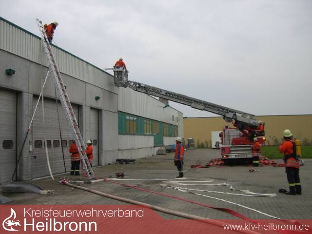 Im Rahmen der Überprüfung gefährdeter Objekte und der Vermittlung von Ortskenntnis wurde am 21.4.2008 bei der Fleischwarenfabrik Nothwang im Gewerbegebiet am Kocherwald eine Alarmübung mit folgender Übungslage durchgeführt: