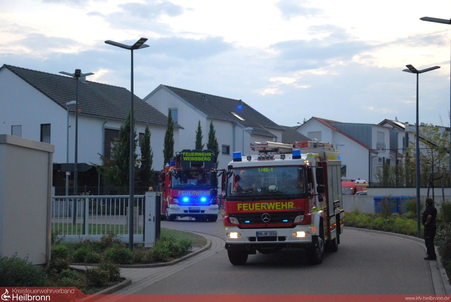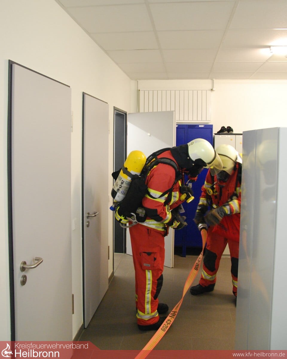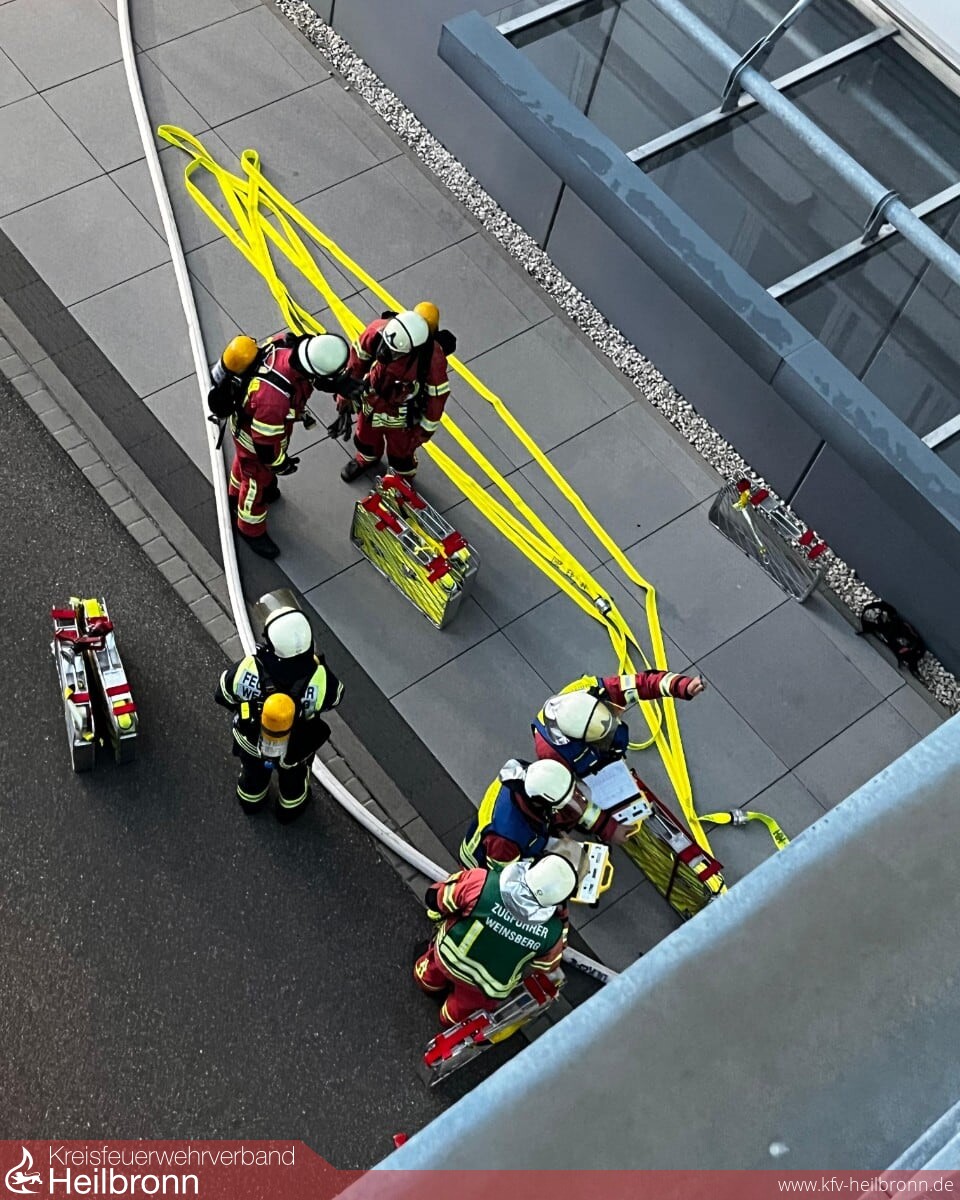 Alarmiert wurde die Feuerwehr Weinsberg über DME. Nach dem Eintreffen der Einsatzkräfte stellte sich die Lage als Brand im Treppenhaus mit mehreren vermissten Personen dar.
