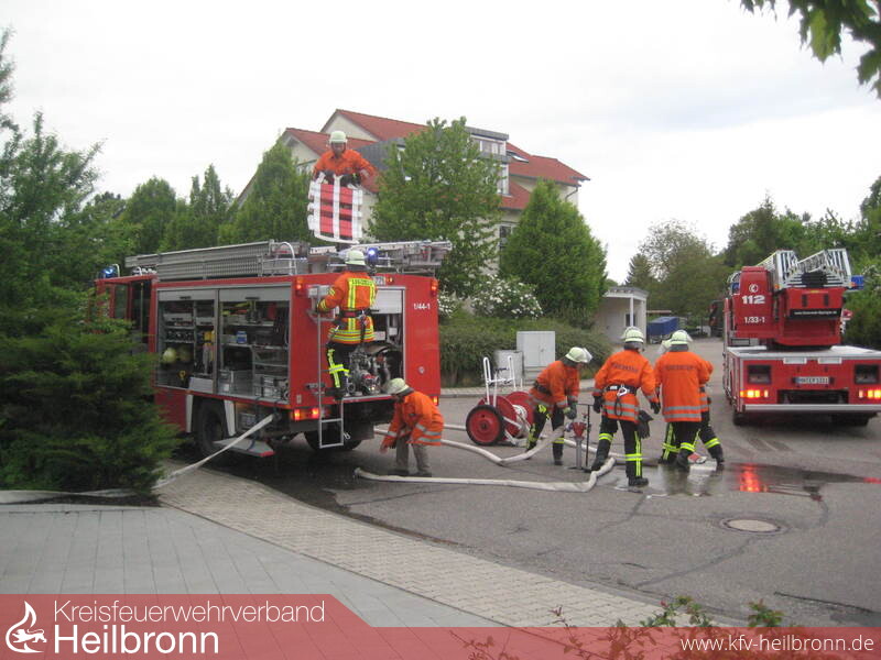 Die Feuerwehr Eppingen war mit 2 Löschfahrzeugen, der Drehleiter und dem Einsatzleitwagen mit insgesamt 26 Einsatzkräften vor Ort. Stadtkommandant Martin Kuhmann zeigte sich mit dem Ablauf der Übung sehr zufrieden. ?Die Lage wurde richtig erkannt und die Übungsdurchführung erfolgte korrekt und zügig?, so der Feuerwehrkommandant.