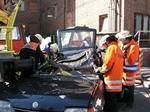 Der Einsatz von hydraulischem Rettungsgerät ist notwendig, um die eingeklemmten Insassen aus ihrer lebensbedrohlichen Zwangslage befreien zu können.