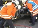 Mit dem Spreizer wird die Tür entfernt, dann ist der Zugang zur Fahrerin frei.