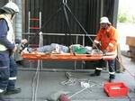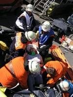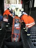 Einer der Arbeiter wurde aus der Montagegrube mittels Korbtrage gerettet.