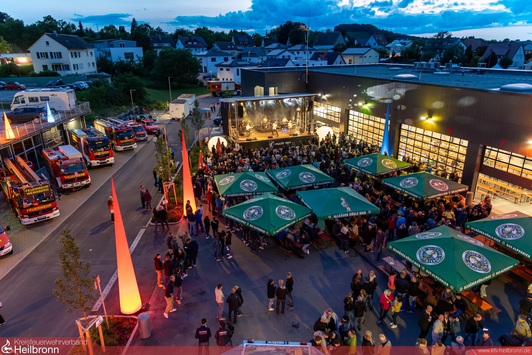 Am Pfingstsamstag um 16:00 Uhr startete das Einweihungsfest. Ab 20:00 Uhr hieß es dann „Showtime“ und die Band „Me and the Heat“ sorgte mit energiegeladenen Hits für beste Stimmung. Auch am Sonntagabend gab es erstklassige Livemusik. Die Rock-Cover Band „Crazy Zoo“ heizte die Bühne kräftig ein und begeisterte das große Publikum mit bekannten Songs. Der große Hof und der 14 Meter hohe Übungsturm waren in verschiedenen Farben hell beleuchtet und sorgten für eine tolle Atmosphäre auf dem Festgelände.