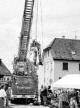 Foto: Walter Baer demonstriert das Abseilen mit einem Hund über eine Drehleiter der Feuerwehr. (Foto: Willi Schweiker)
