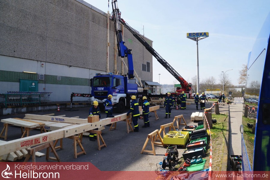 Den ehrenamtlichen Helfern von THW, Rettungsdienst und Feuerwehr bot sich am 25. März 2017 ein umfangreiches Übungsszenario. Gegen 4 Uhr wurden die Helfer zur Einsatzstelle „EDEKA Ellhofen“ alarmiert. Da das Erdbeben auf der Richterskala die Stufe 6 erreichte, mussten diese mit leichten bis mittelstarken Schäden am Gebäude rechnen.